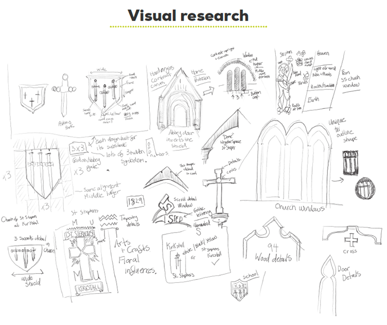 I live locally, so I spent time researching at Kirkstall Abbey, just a short walk from St Stephen’s, where there are loads of inspiring pieces of metalwork as well as the ruins themselves. And I started to notice correlations between compositions that spanned hundreds of years of history. It’s amazing what’s there right on our doorstep.  We do live in an increasingly digital age, so it was also really important to bring that history forward into the modern world, fit for the future, so I balanced this with a lot of trend-forward research into digital platforms and contemporary logo design best practice.